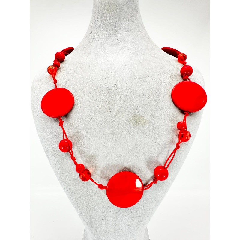 Kırmızı Yuvarlak Taşlı Kolye