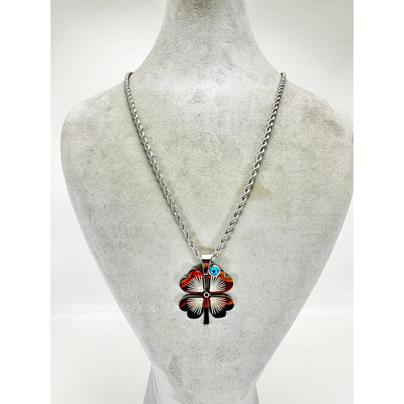 Gümüş Yonca Yapraklı Nazar Boncuklu Kolye