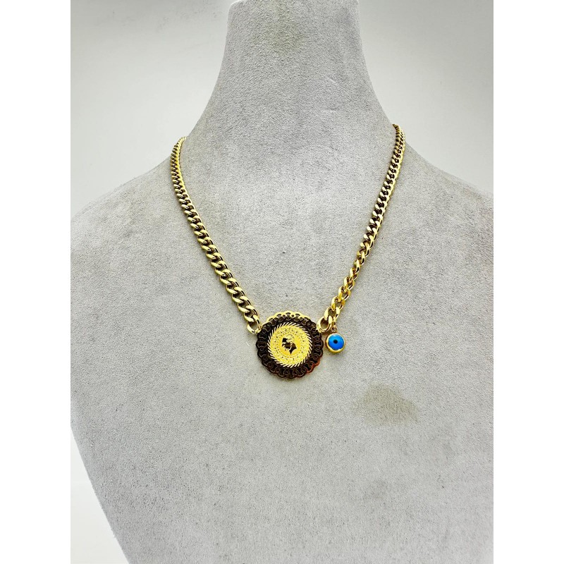 Gold Tuğralı Taşlı Kolye