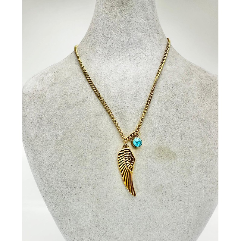 Gold Kanat Desenli Nazar Boncuklu Kolye