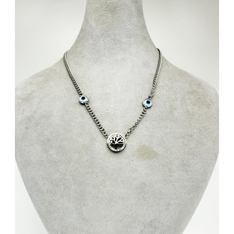 Gümüş Ağaç Deseni Nazar Boncuklu Kolye