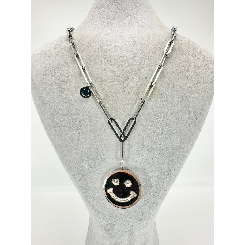 Gümüş Siyah Taşlı Gülen Yüz Kolye