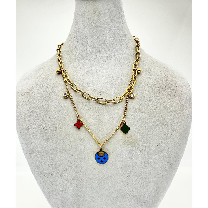 Gold İkili Renkli Taş Detaylı Kolye
