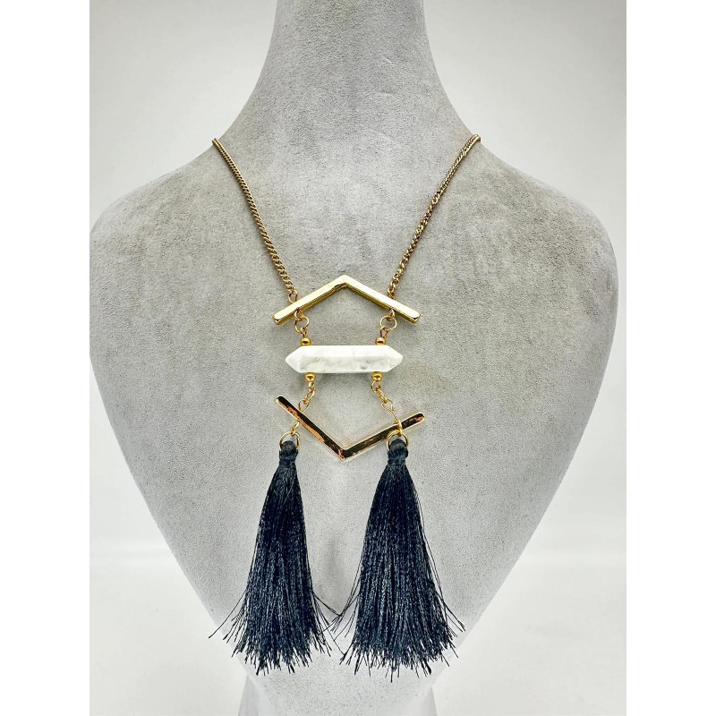 Gold Taşlı Siyah Püsküllü Kolye