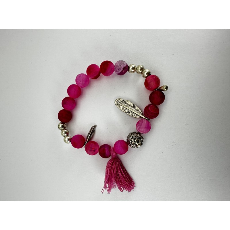 Koyu Pembe Yuvarlak Taşlı Bileklik