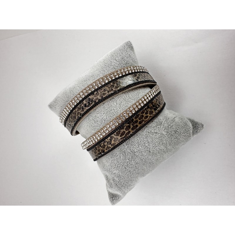 Kahverengi Leopar Desenli Taşlı Bileklik