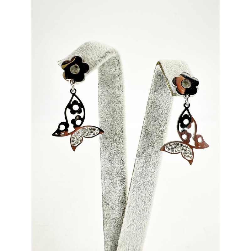 Gümüş Taşlı Kelebek Detaylı Küpe