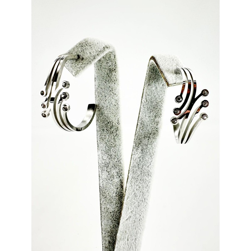 Gümüş Taşlı Yarım Halka Küpe