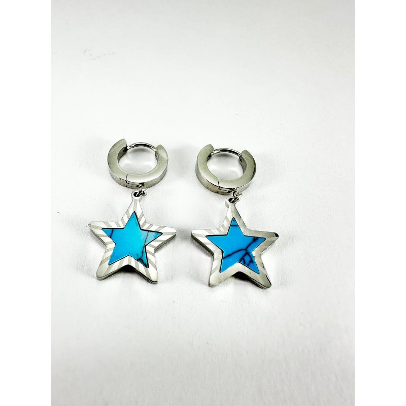 Gümüş Mavi Yıldız Detaylı Küpe