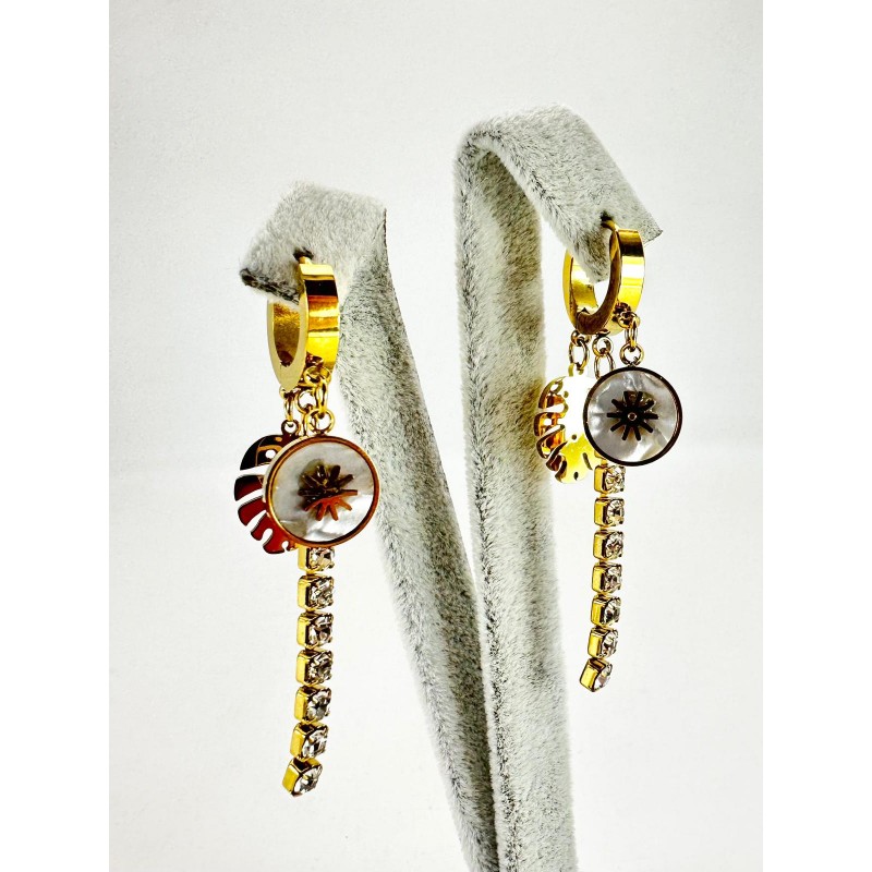 Gold Taşlı Yaprak Desenli Küpe