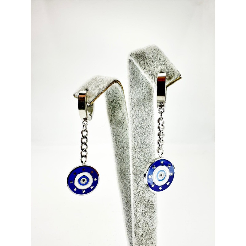 Gümüş Zincirli Nazar Boncuğu Küpe