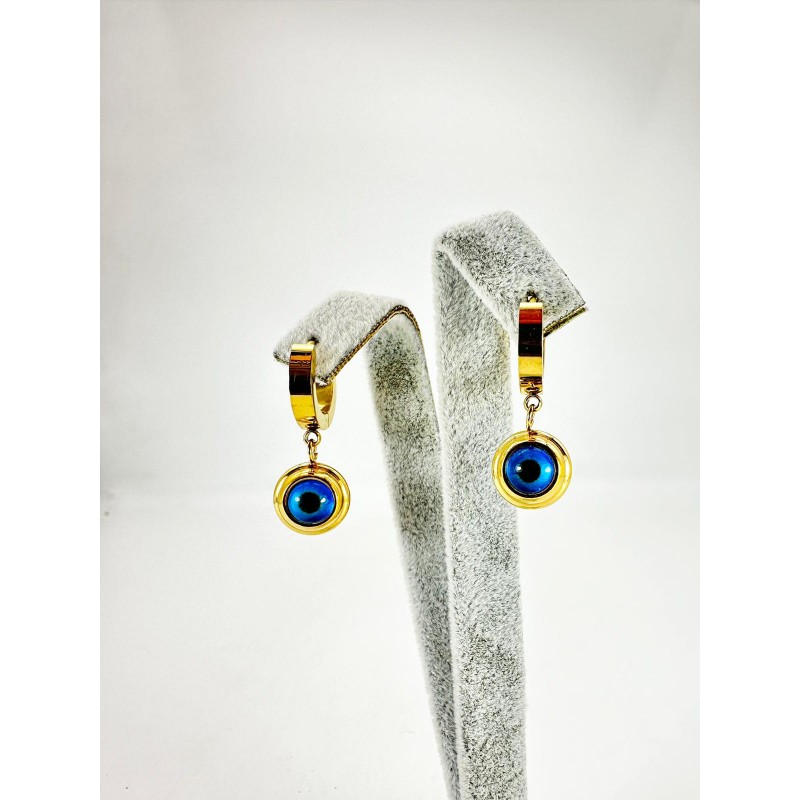 Gold Yuvarlak Nazar Boncuklu Küpe
