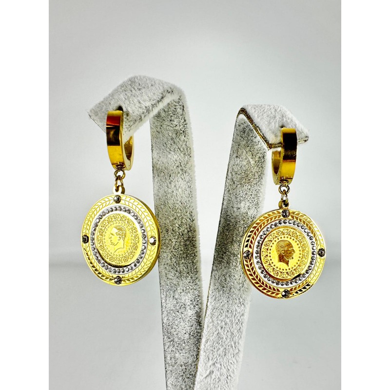 Gold Taşlı Lira Küpe