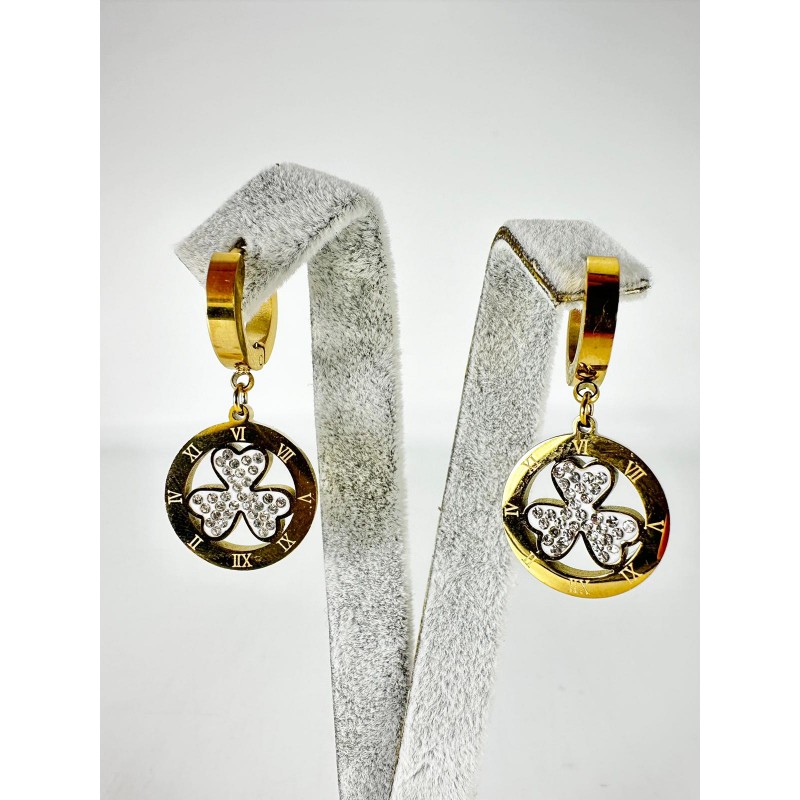 Gold Taşlı Yonca Küpe