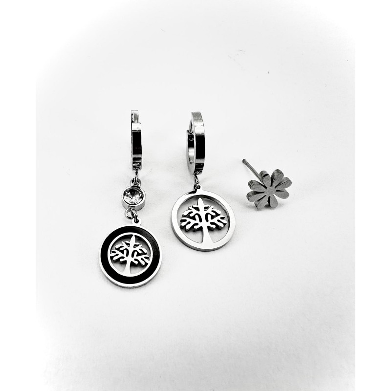 Gümüş Hayat Ağacı Detaylı Üçlü Küpe