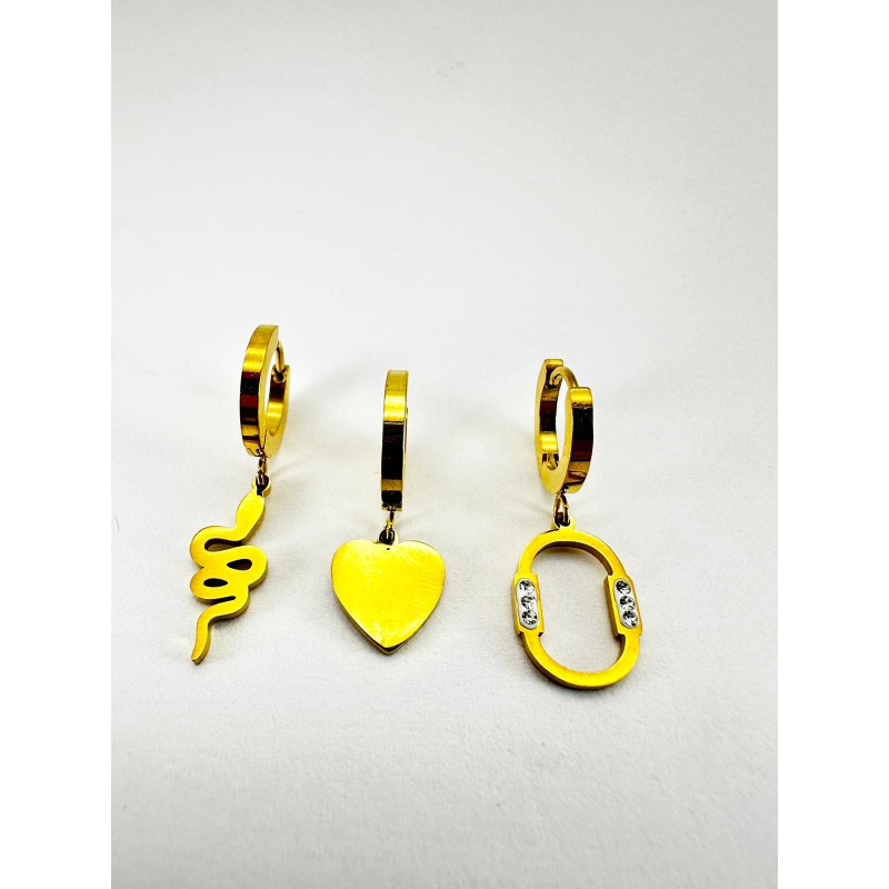 Gold Figürlü Üçlü Küpe