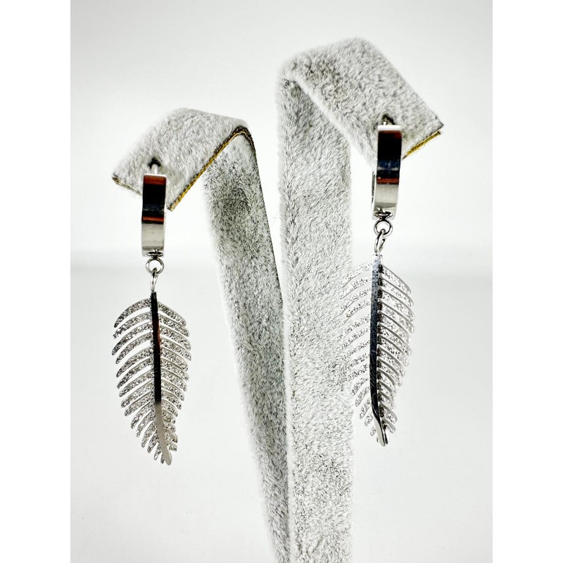 Gümüş Yaprak Detaylı Küpe