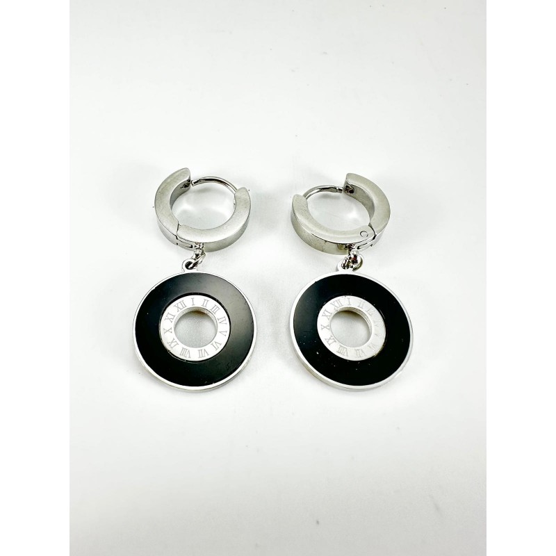 Gümüş Siyah Taş Detaylı Küpe