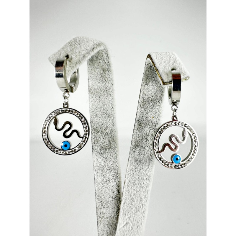 Gümüş Taşlı Yılan Detaylı Küpe