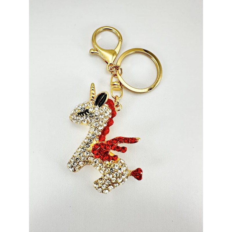 Unicorn Taşlı Kırmızı Anahtarlık